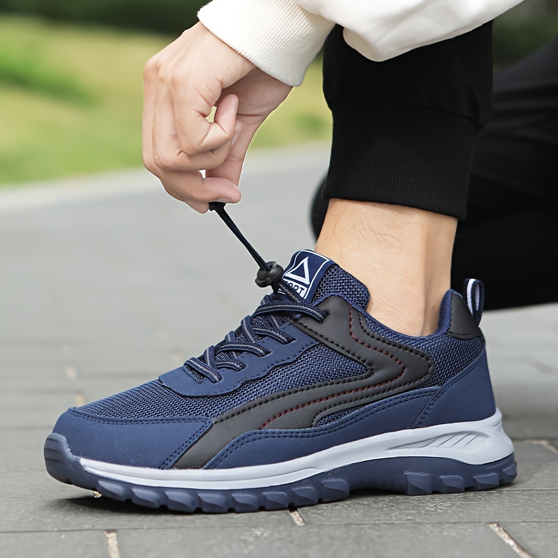 • Plus Size Men's Trendy Solid Sneakers With Rotating Buckle, Comfy Non Slip Casual Durable Shoes For Men's Outdoor Activities