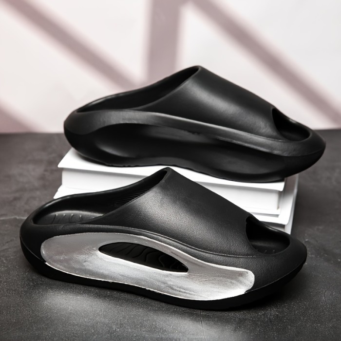 • Colorblock Stylish Pillow Slides, Soft Sole Platform Slip On Home Shower Slides, Non-slip Summer Casual Slides