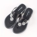 • Women's Flower Rhinestone Flip Flops, Fashion Summer Flat Slide Shoes, Outdoor Beach Slides
